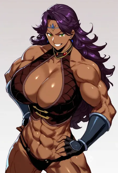 アマゾンの美:自然体。彼女は非常に背が高く、極めて筋肉質で、非常に魅力的である。しかし、物語が進むにつれて、その美しさは失われていく。筋肉質な腕と脚がゴブリンに切断され、ゴブリンのベイビーファクトリーとして扱われた結果、引き締まった腹には巨大な妊婦の膨らみが生じる。物語の終盤では、手足のない膨らんだ体は、かつての筋肉質な姿をまったく残さない。