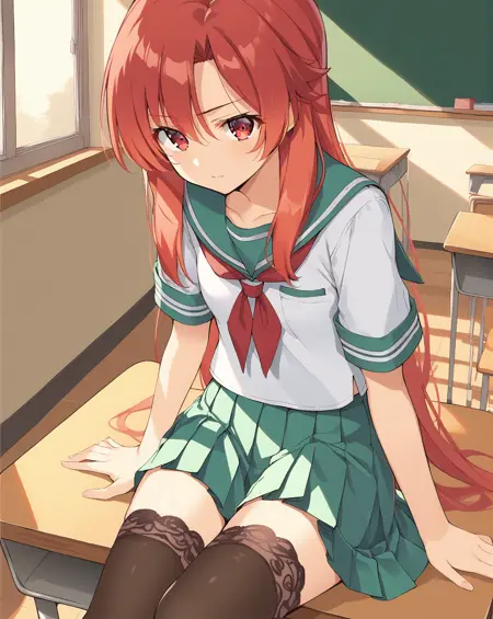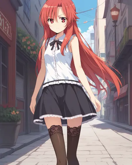トリガー: リサラ・リスタル、赤い目、赤い髪、長い髪、小さな胸、_(裸のときは中程度の胸の方が良い)
