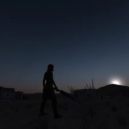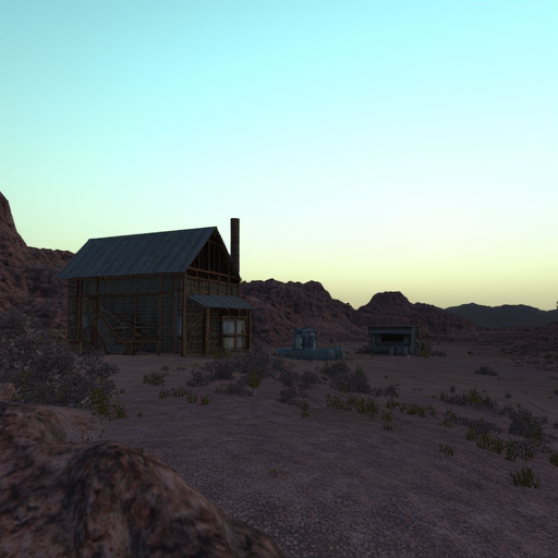 "CGI로 렌더링된 장면으로, 포스트-apocalyptic 황폐지 풍경을 묘사해 보세요"
