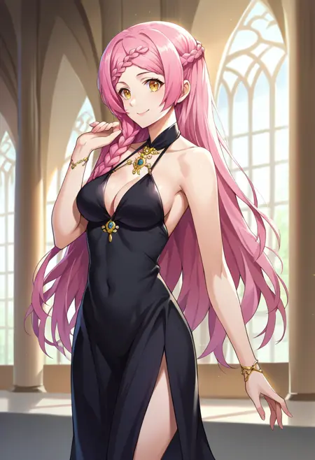 KochouYoshida, yellow eyes, pink hair, long hair, braid