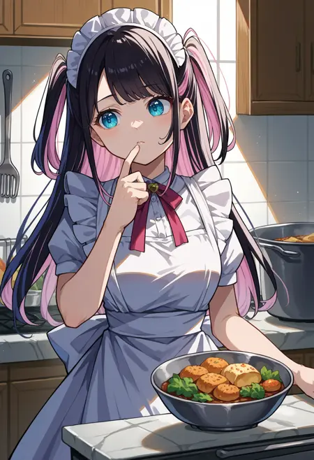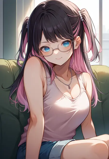 NazunaKaga, blue eyes, multicolored hair, black hair, pink hair, long hair, two side up