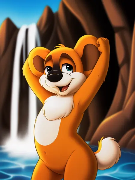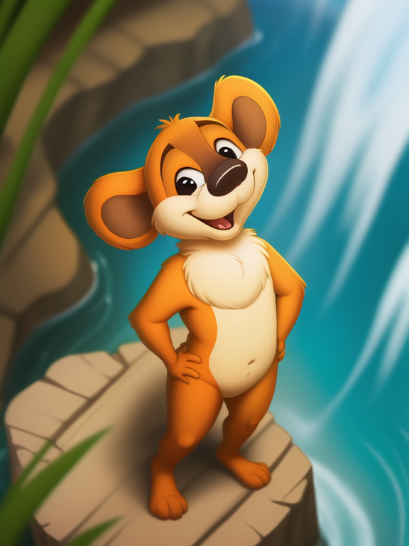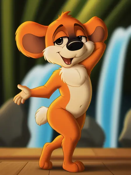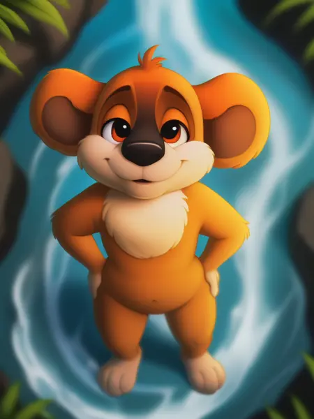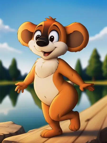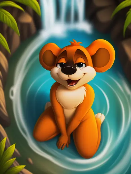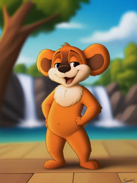 CoalaRedAp, koala, red fur, white sclera, black eyes, chest tuft, chibi, small body, nude, naced,