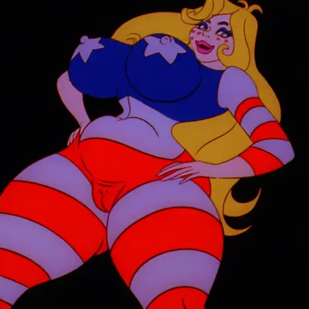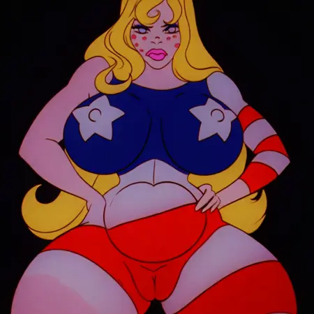 missamerica, blonde woman, big breasts, body painting, lipstick, makeup, wide hips