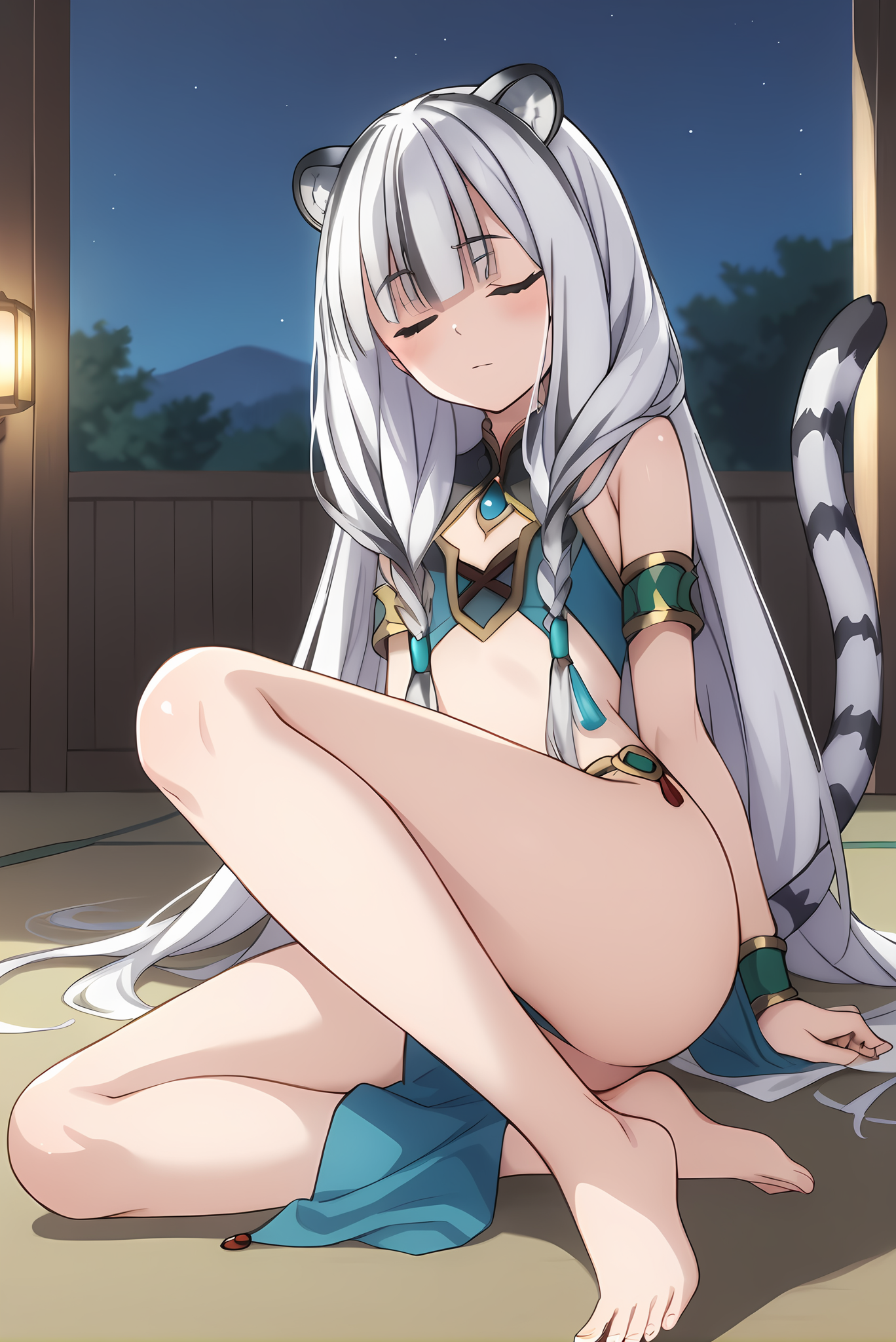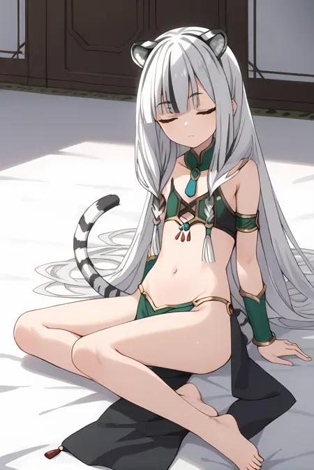 白发,长发,蓝眼睛,闭眼
