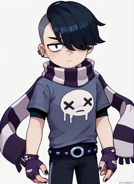 bsedgar , 1boy , short hair , black hair, hair over one eye,