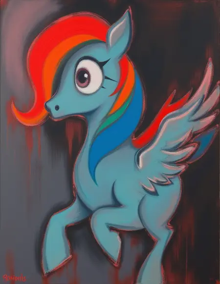 V1 使用约40张由Civit标注的图像进行训练,可使用如“...by Francis Bacon.”等术语进行提示。