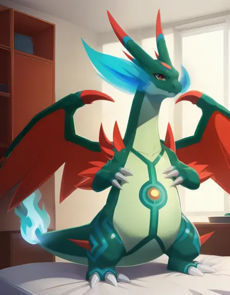 相关词:黑色皮肤,灰色皮肤,蓝色皮肤,红色眼睛,棕色眼睛,明亮瞳孔,白色瞳孔,绿色皮肤,獠牙,尖牙,张开獠牙,尖牙外露,爪子,龙男孩,龙尾,火焰尾尖,火焰,蓝色火焰,喷火,展开翅膀,龙翼,蓝色翅膀,红色翅膀,无人类,怪物男孩,宝可梦(生物),闪亮宝可梦,超进化宝可梦,喷火龙,宝石,胸饰,球体