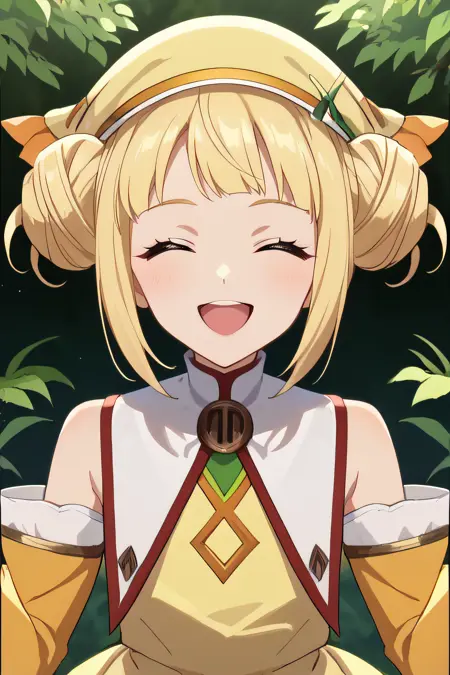 collete, double bun, blonde hair, brown eyes