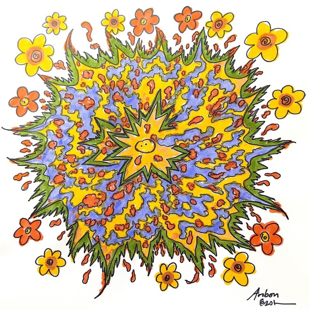 이 모델은 흰 종이 위에 마커로 그린 추상적 패턴 아트를 생성하도록 설계되었습니다.