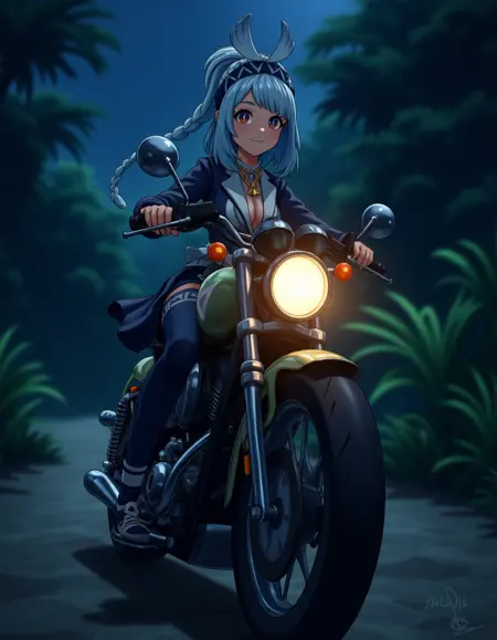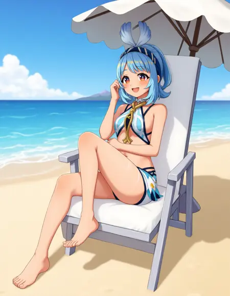 推荐关键词:mualani,浅蓝色头发,单马尾,发带,晒痕,泳衣