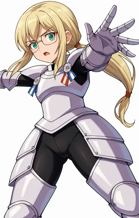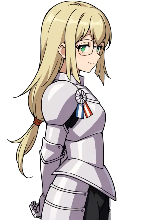| Trained Words | jeanne, blonde hair, low ponytail, long hair, bangs, green eyes, glasses, long white dress, short over long sleeves, white short sleeves, purple long sleeves, necklaceCopied! jeannearmor, blonde hair, low ponytail, long hair, bangs, green eyes, glasses, armor, armored gloves, black bodysuit under armorCopied! |