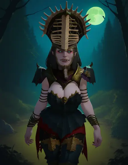 尼菲拉塔端坐于昔日矮人堡垒城市‘银峰’之中的奢华王座之上。自被流放出奈赫卡拉的土地以来,她便一直在策划并编织一张由所有现存吸血鬼血统构成的阴谋与联盟之网,希望将它们统一或奴役于自己的统治之下,以期恢复拉米亚城昔日的辉煌,重建血之神殿,并重新确立自己作为这座城市的永恒女王之位。”