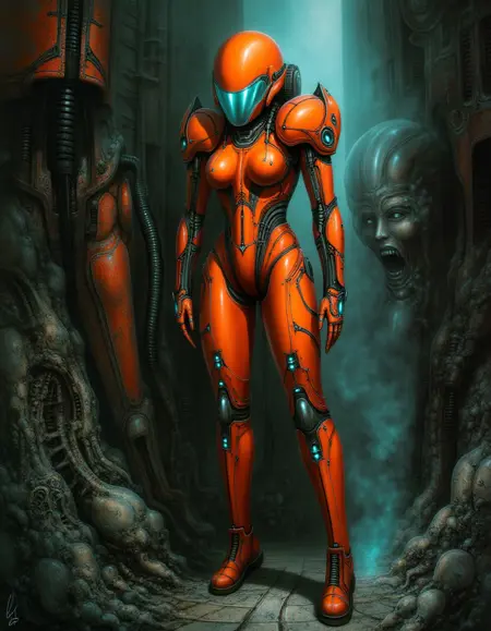 H.R.ギーガーのスタイルのLoRAで、彼の作品のみで学習されています。