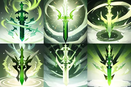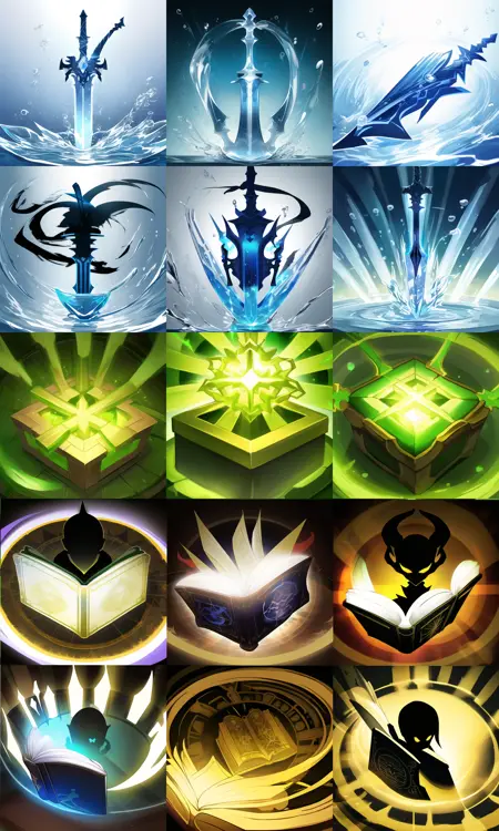 2. V2バージョンは、特定の光エフェクトLoRAと併用するよう微調整されたものです。独自で強い光効果や影効果は持っていません。たとえば「Game Icon_Skill_Healing」といったLoRAモデルと組み合わせることで、画像に掲載したような効果が実現できます。その他にもさまざまな組み合わせによる効果が、皆様の探索を待っています。