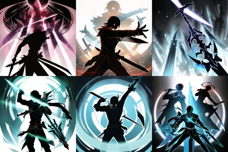 1. V1バージョンは、独自に強力な光エフェクトとシャドウ(影)効果を備えており、そのまま使用するのに適しています。自然な動きがあり、戦闘や燃えるような光効果に適しています。プロンプトには「silhouette」と「glowing」を記載してください。他の小さなモデルと組み合わせると、画面がごちゃついてしまう可能性があります。
