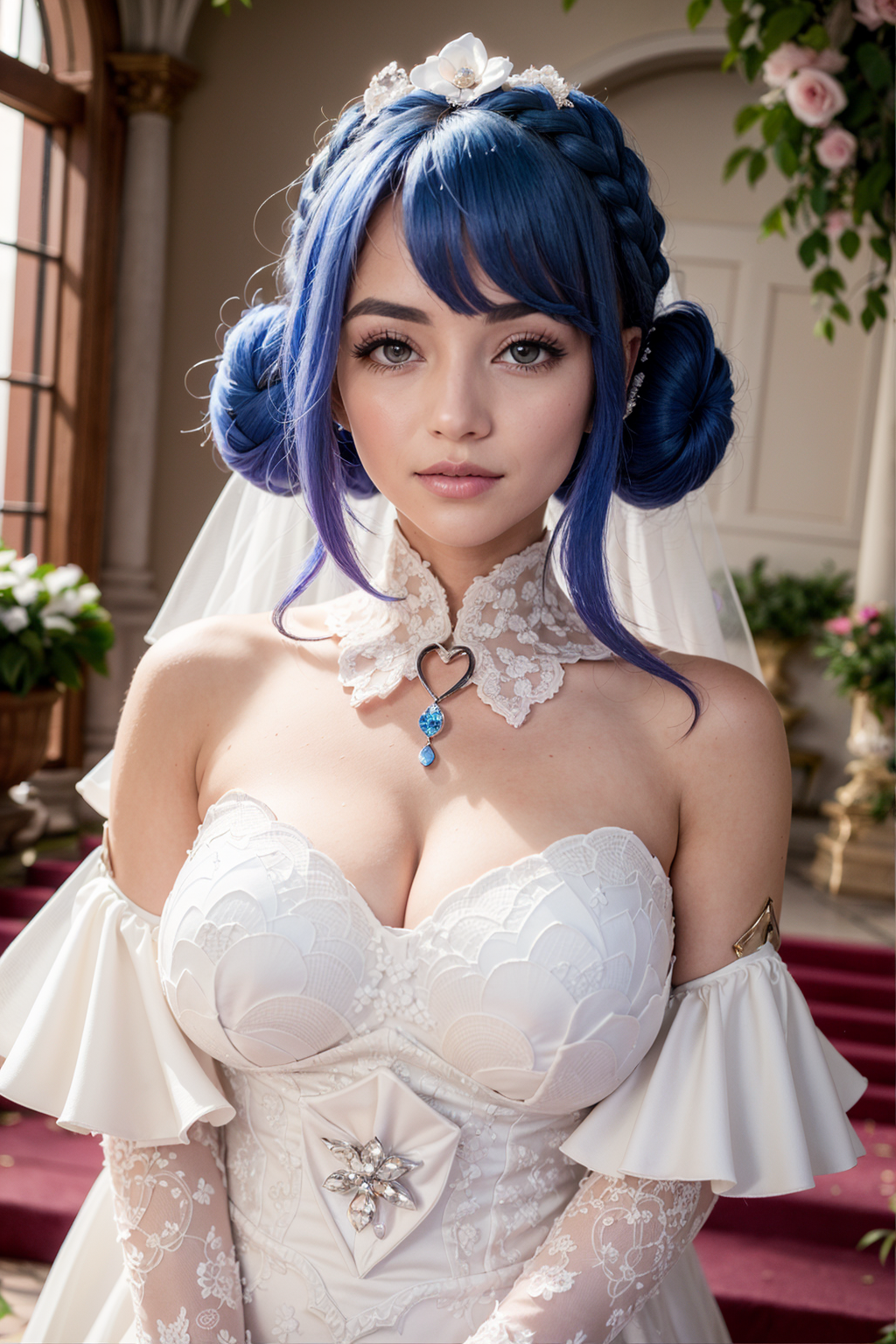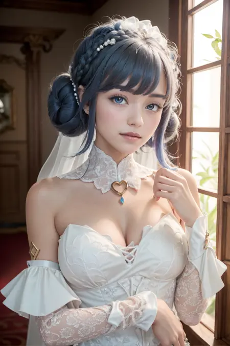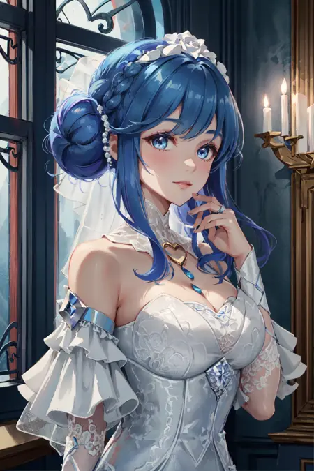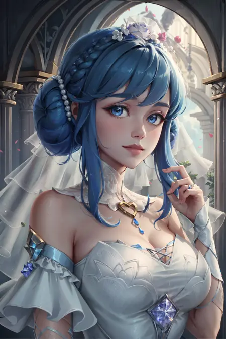 可选标签:婚纱,双髻,连衣裙,蓝色头发