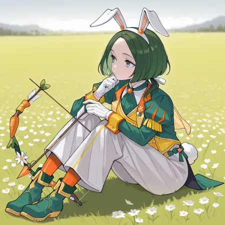 봄 린하르트의 당근 활은 데이터셋에서 드문 편이며 반복 가능한 외모를 얻는 것이 어렵습니다. 그러나 다음 태그를 사용하면 당근 활을 나타낼 수 있습니다: