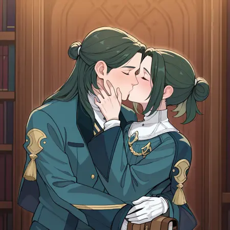 타임스킵 린하르트: linhardtWar, 하프 업도, 단일 헤어 뭉치, 청록색 테일코트, 진한 파란색 베스트, 흰색 터틀넥, 태슬, 펜던트, 사첼, 레이어드 슬리브, 청록색 바지, 검은 부츠