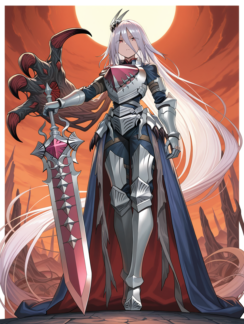 タグ(武器、不適切):巨大な銀の剣、巨大な銀の剣を構える、盾