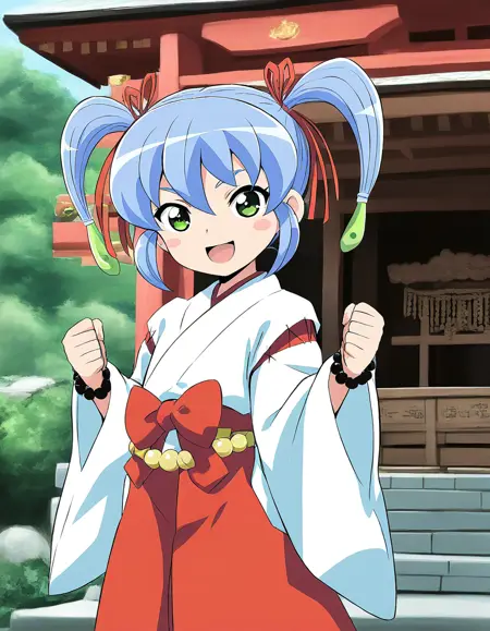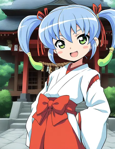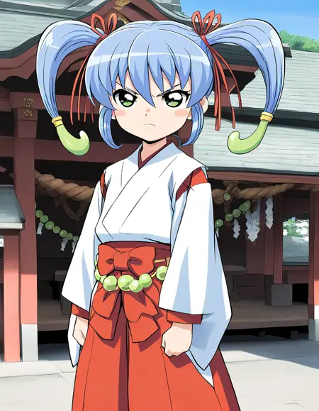 来自京都天流缘之社“新太白神社”的斗神巫女,10岁。与柊的霍林缔结契约,因此也能使用刻渡之秘术。原本独自支撑着新太白神社,但在将月之勾玉送达リク后,便搬进了リク所居住、由ソウタロウ经营的公寓。リク与ソーマ的日常饮食均由她负责。擅长和食,也能制作洋食中简单的料理,如炒蛋。言行举止远超其年龄,显得格外成熟。起初反对リク与出身地流的ソーマ亲近。与コゲンタ一样,从一开始就对マサオミ的言行抱有疑虑。常会抑制总想贴近リク的モモ。她最爱的洗发水是“茉莉之滴”。通过函授教育,已掌握至初中三年级的学习能力,并拥有书道八段资格。似乎对ソーマ有所在意,但因双方年幼且不坦率,总是以争吵收场。大战结束后,她重返新太白神社,利用刻渡之镜将マサオミ等人送回他们原本的时代。第45话中,她被触手捕获、束缚喘息的场景,因其极具诱惑力而成为传说。如今监管严格,这样的画面恐怕已无法在电视上播出。