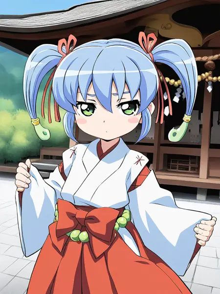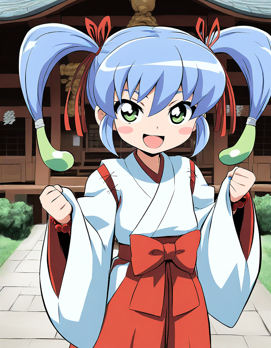 已更新至Ver2.0,现在应该能更准确地呈现脸颊上的▽标记和发色等细节。降低权重还可以切换成长发版本。在动画正片中,这种形象极为罕见,几乎看不到。