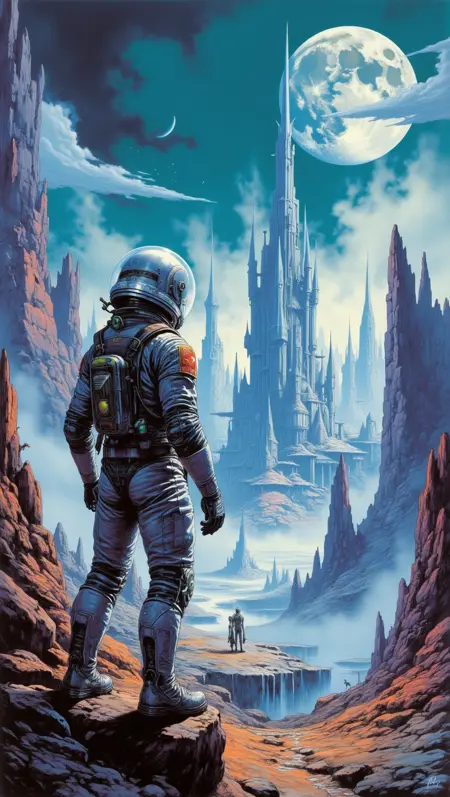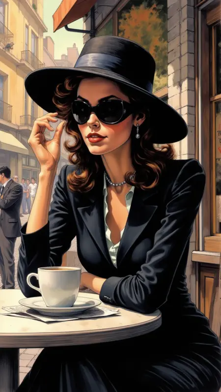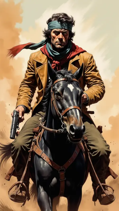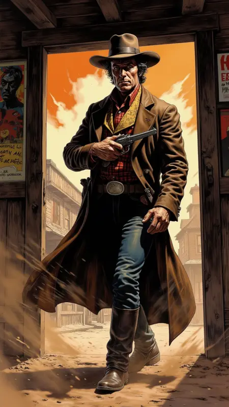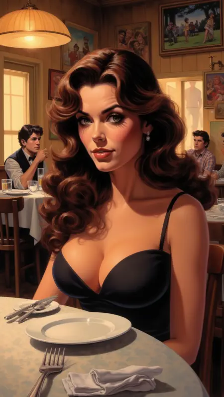 专为冒险主题设计的**“冒险漫画书”**风格,让人联想到20世纪中期的漫画艺术,具有高度风格化、夸张的特征以及鲜明饱和的色彩。角色通常以理想化的身形呈现,如戏剧性的曲线和锐利的面部轮廓,传达出一种魅力与强化的写实感。背景常带有怀旧氛围,细致描绘了特定时代的家具与场景,将画面牢牢扎根于上世纪中期的氛围中。光影效果常具电影感,通过柔和的光晕与戏剧性的阴影强化情绪,整体美学融合了写实与经典冒险与浪漫漫画中典型的夸张戏剧性。