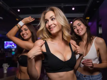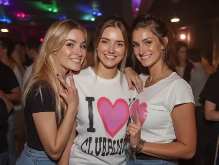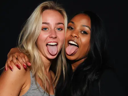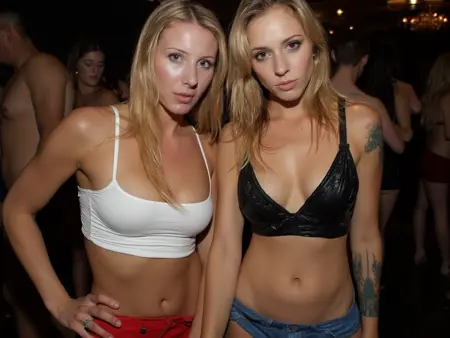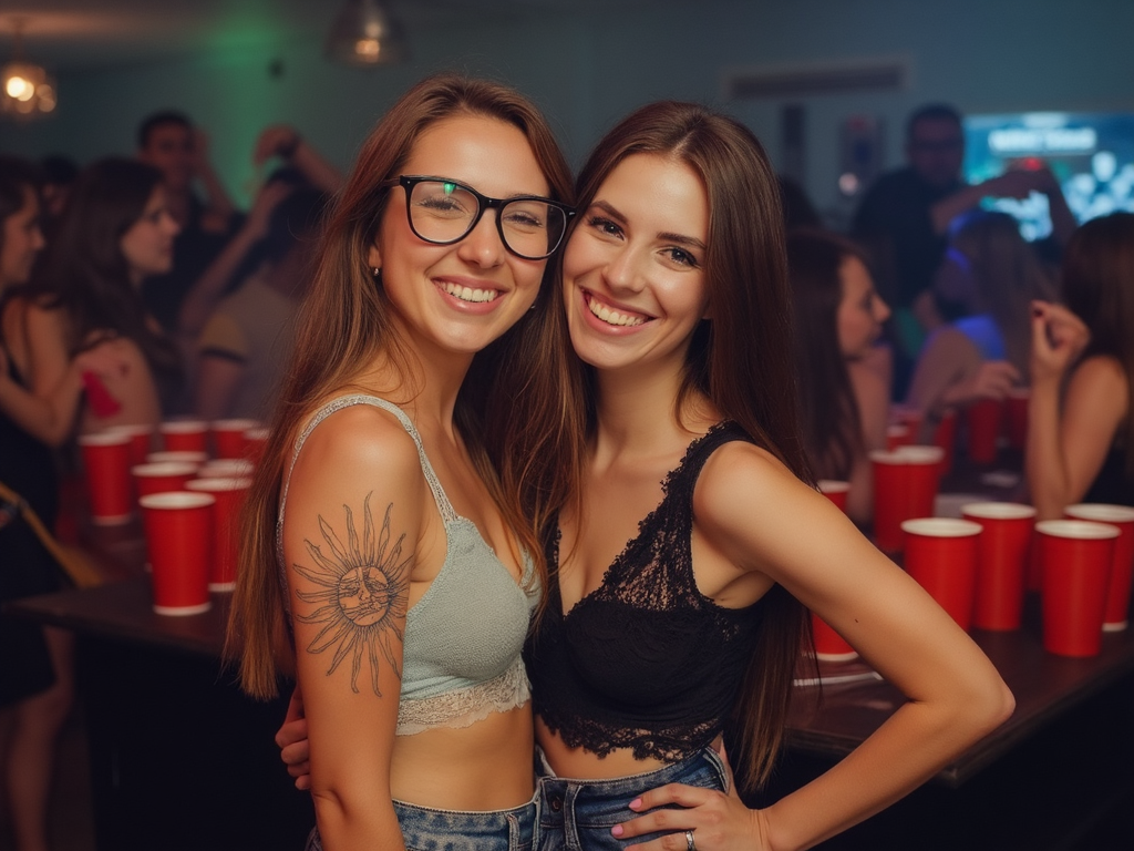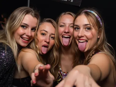 파티 중인 소녀들이 카메라를 바라보며 웃고, 혀를 내밀고, 젖은 티셔츠 경연, 음료를 붓고, 머리를 기울이고, 미친 듯한 표정을 짓고, 키스하며, 벌거벗은 또는 노출된 배를 드러내고, 승리의 손동작으로 손을 들고 있는 600개 이상의 고해상도 선명한 이미지에 대해 2000px까지 선명하고 고화질로 학습되었습니다.