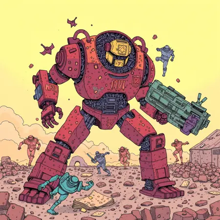 これは、スペインのアーティストでサイバーパンクジャンルのサイエンスフィクション作品で知られる ジョサン・ゴンザレス(別名:Deathburger)のスタイルを模倣することを目的としたLoRAです。彼のスタイルは、高い詳細度、鮮やかな色使い、そしてリーニュ・クラール技法の使用が特徴です。彼の作品は暗いテーマを扱いながらも、明るさと遊び心に満ちており、しばしば風刺的な要素を取り入れています。彼のアートは、モービウス、ジオフ・ダロー、大友克洋、およびその他のサイエンスフィクション・コミックの巨匠たちの影響を受けています。彼の作品は1980年代のノスタルジックな美学と現代的な未来観の独自な組み合わせで注目を集め、現代のサイエンスフィクション挿絵の明るい代表的な存在となっています。_