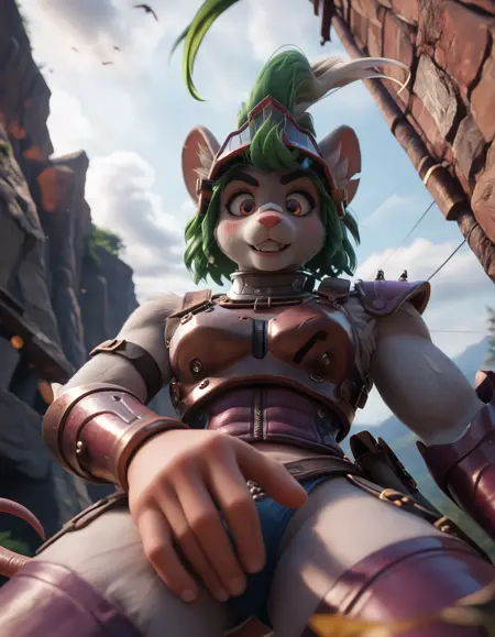 Matilda 是艺术家 Dansyron 笔下的角色,一只灰色皮毛、绿色长发、佩戴开放式头盔装甲的老鼠。