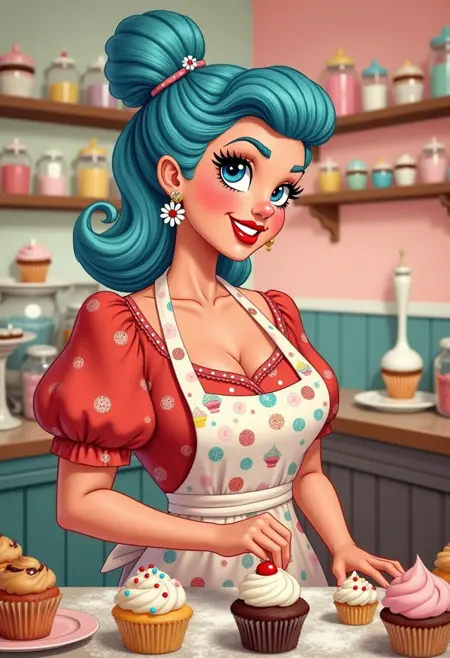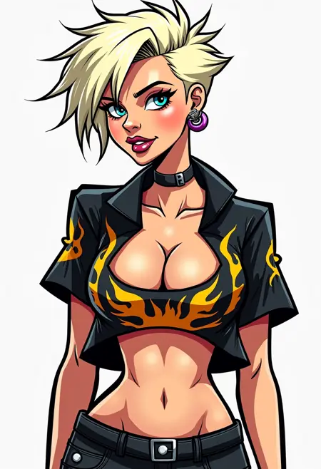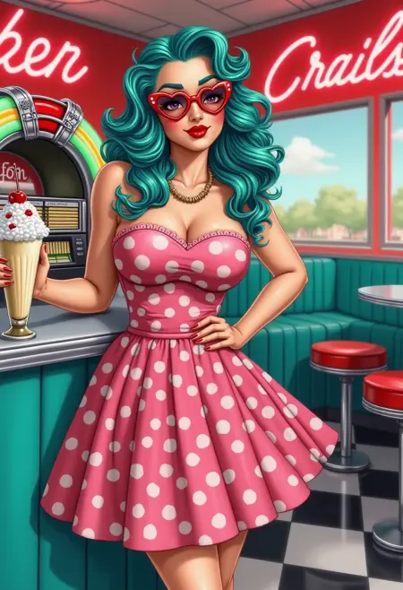 general prompt guide: a vibrant, colorful digital illustration featuring a stylized, curvy woman with a pin-up aesthetic, A drawing with a pin-up model aesthetic, digital drawing in a cartoon style, a vibrant, whimsical illustration of a stylized, fantastical character, etc