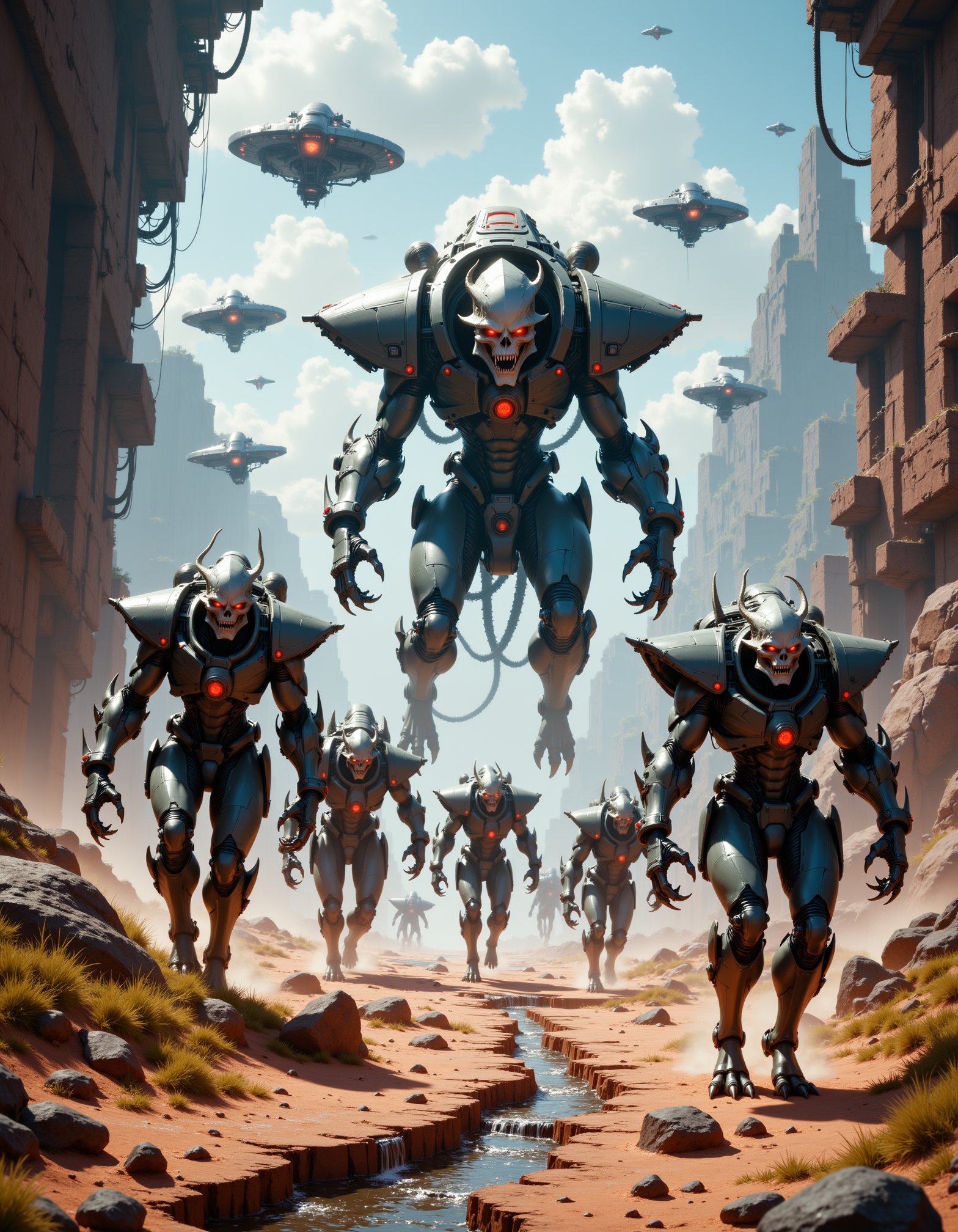 メカノイドは、鋭く機械加工された金属と成形プラスチックでできた重厚な外骨格を持つ有機的な機械である。生命維持やその他の生物学的機能のためにいくつかの有機部分が残されているが、最終的には歯、爪、棘によってその戦闘機械であることを証明する戦争機械である。