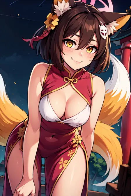 | 학습된 단어 | zzIzuna, animal ears, fox ears, fox girl, animal ear fluff, yellow eyes, brown hair, pink halo, halo, short hair, fox tail, tail, hair ornament, hair between eyes, fang, skin fang, visor cap black gloves, fishnet thighhighs, fox shadow puppet, japanese clothes, neckerchief, partially fingerless gloves, pleated skirt, sailor collar, serafuku, single thighhigh, blue skirt, floral print, kunai, sleeveless, thigh holster, black hair, eyeshadow, pink scarf, shirt, hadanugi dousa, ninja, pom-pom (clothes), red scarf, wide sleeves, 복사됨! |