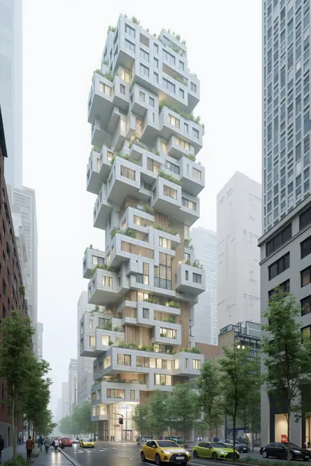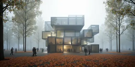 このモデルは、建築構造をボクセルデコンストラクティビズムの美的形式に変換することに焦点を当てており、質量は基本的な体積ピクセルで構成された構成に基づいています。