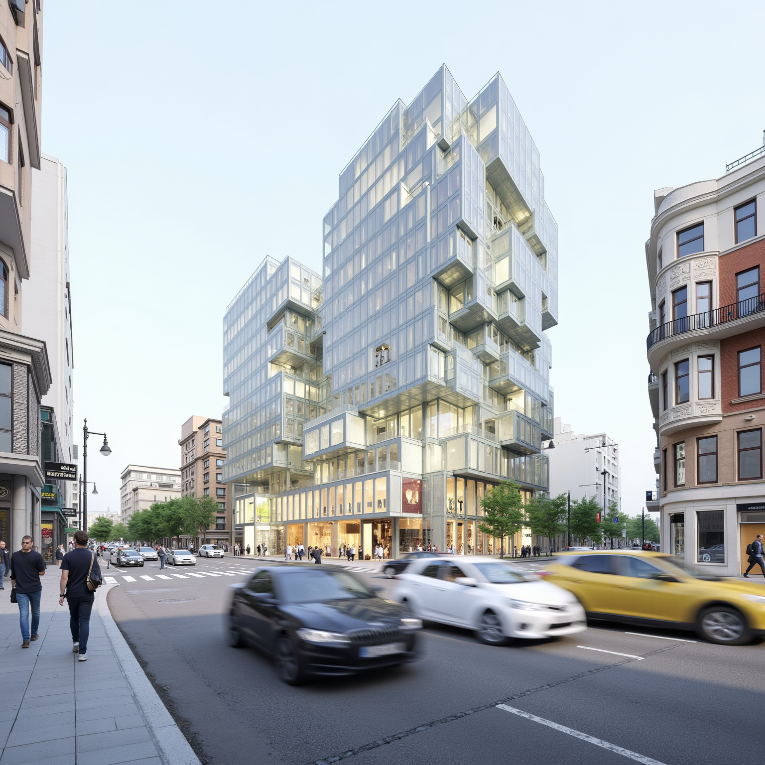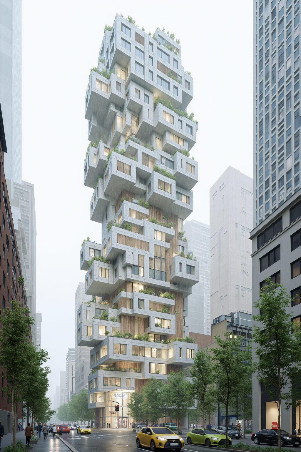 The model focuses on transforming architectural structures into the aesthetics of voxel deconstructivist form-making, where massing is based on a composition made up of basic volumetric pixels