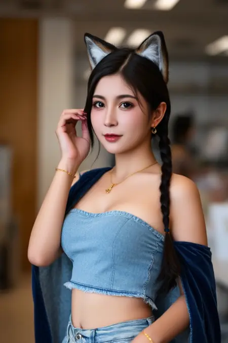 她可能会联想到某些角色,但事实上,这一切都是基于我认为符合我审美偏好、同时又具有一些可识别特征的角色元素。从一两张符合需求的参考图开始(这些图也是由AI生成的),再通过一系列基于角色一致性、高效图像生成与高清放大技术,我最终获得了数百张图像的模型训练数据集。这就是你现在所看到的成果。