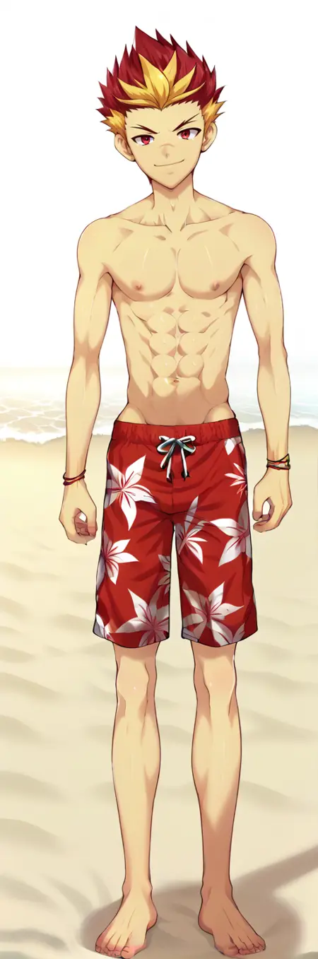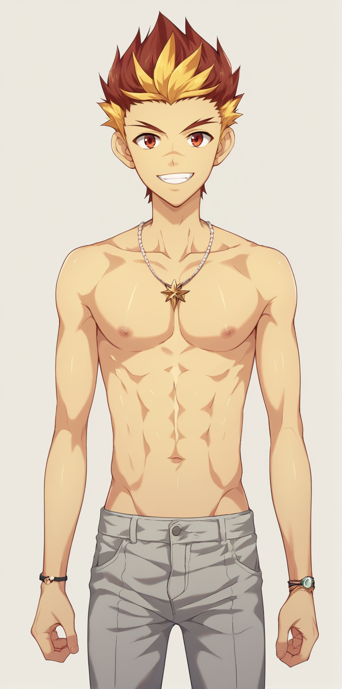 トリガーワード: taiga akatora、ツートーンヘア、金髪、赤髪、スパイクヘア、赤い目