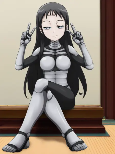 v0 Problems: Don't have all outfit so far, robot parts may be inconsistent and my need to things like "robot, mechanical parts, android, bodysuit, gray ?, black thighs"