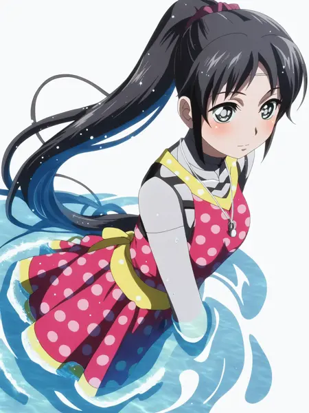 mina, long ponytail, polka dot, swimsuit, (may need dress)