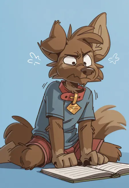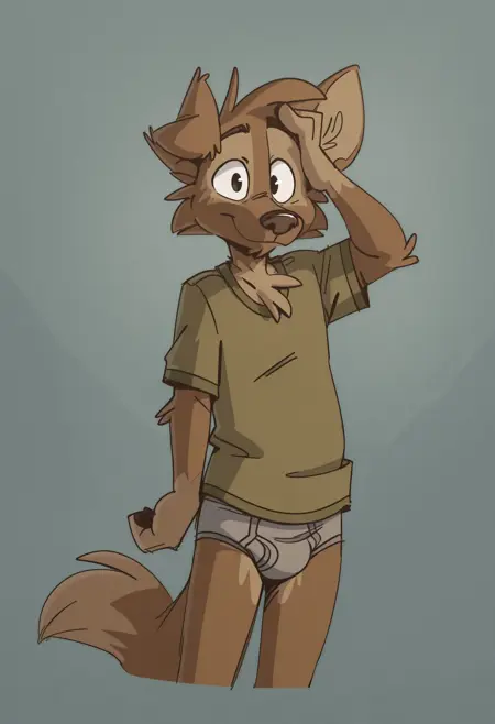 Illustrious: best quality, amazing quality, very aesthetic, absurdres, newest, tinydeerguy, matt_riskely, 1boy, solo, furry, furry male, grey pants, green shirt