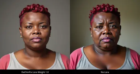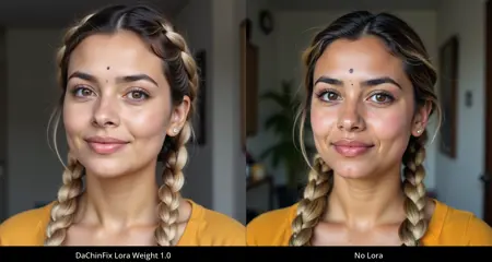 私は、あごのくぼみの問題を修正するLoRAをトレーニングしようと試みました。これは非常に小さなデータセットでの最初のテストですが、予想以上にうまく機能しています: