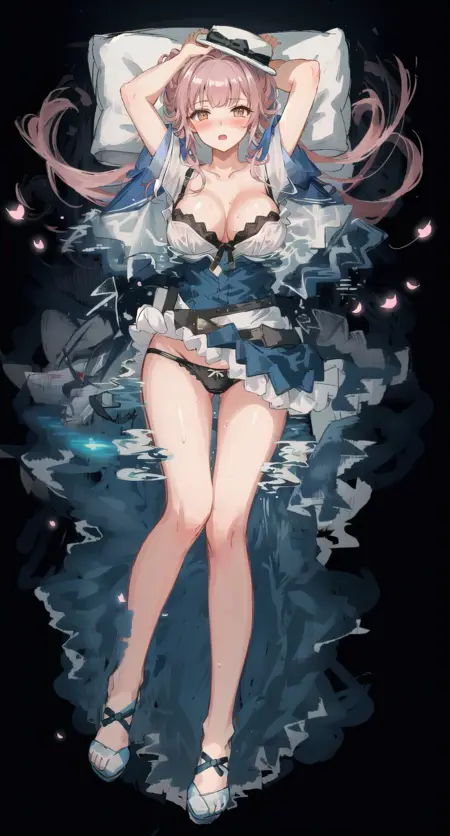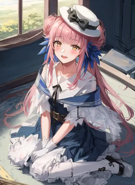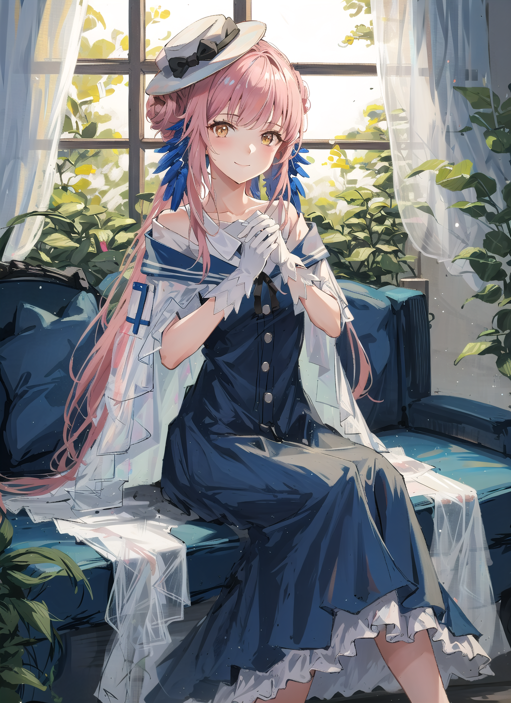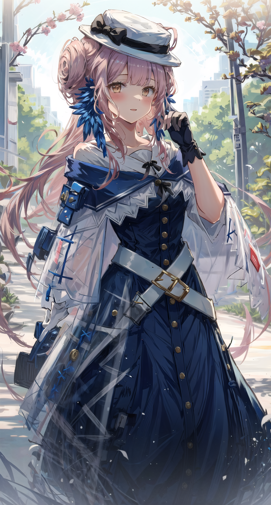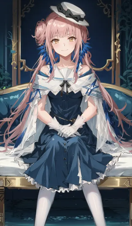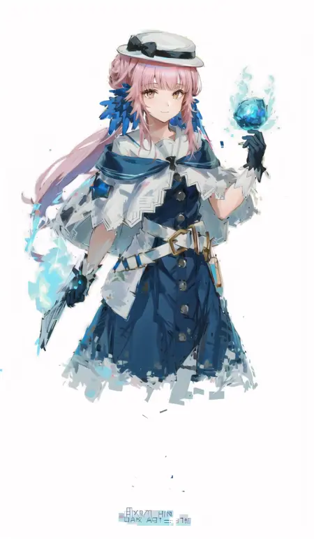 2.OG Costume: white gloves,hat,white belt,blue dress