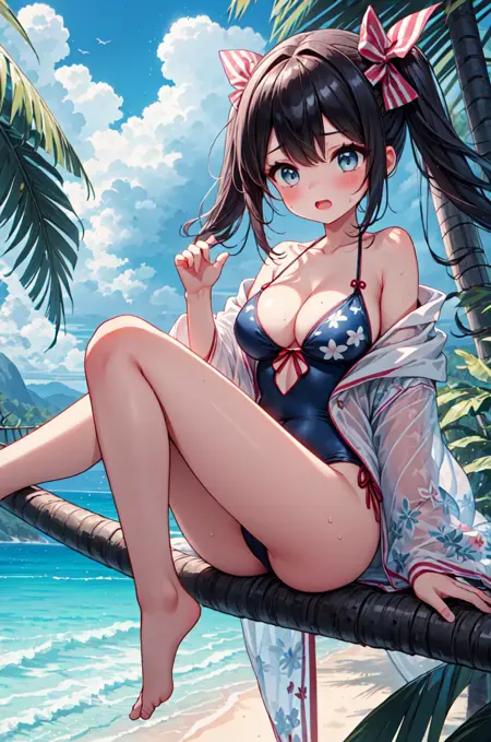 注: 高解像度修正を推奨。「透けやすい袖」が気に入らない場合は、(SD 1.5) で「(((see through sleeves)))」をネガティブに追加してください。