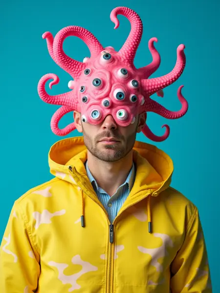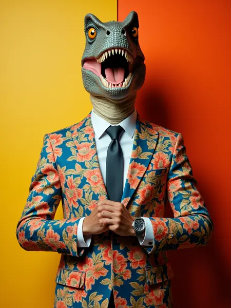 超现实面部变形:此LoRA可无缝将人类面部转化为超现实的混合形态。想象角色拥有鱼类、犬类、鸟类或其他动物的面部特征。过渡自然流畅,将时尚元素与超现实风格融为一体,营造出非现实却极具风格的美学效果。