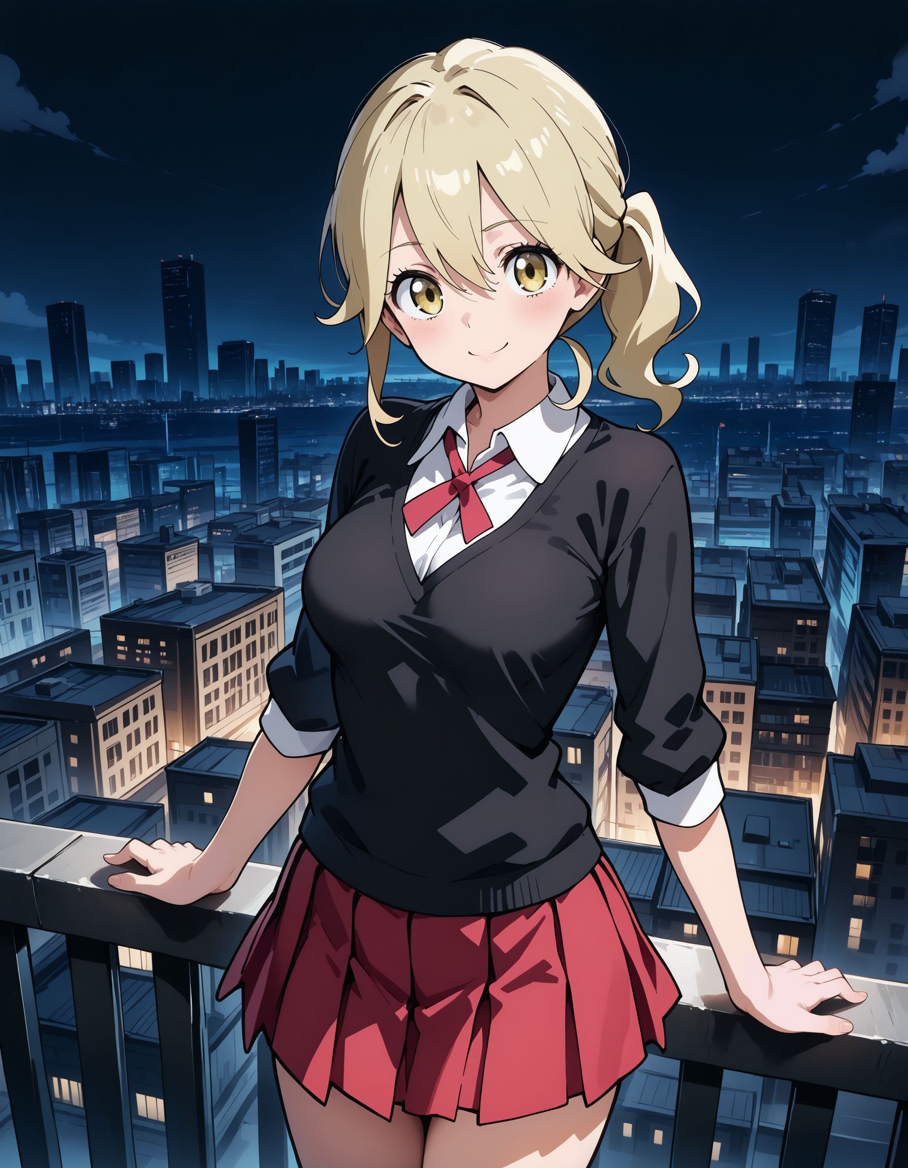 lass xy,necktie,black sweater,white shirt,skirt,socks,loafers