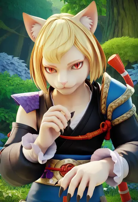 This was mainly just to experiment with how hard it is to get non-standard facial geometry into a lora without wrecking everything else, with partial success. Eye quality suffered a lot on anything beyond portrait (will need fixer and detailer to be decent) and style is a bit unstable between game and concept art (describing the world more and close up shots seem to push it in that direction), but with some trial and error and a bit of rerolling it produces useable results. Do expect some gravity defying red thread and his main outfit to bleed as the dataset available for him at time of creation was tiny and significant training was needed to get the face right without ruining eyes even more. Check example images for ideas.