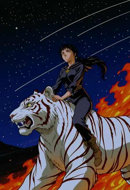 该模型使用1997年动画《剑风传奇》进行训练。我基本看完了整个系列,并截取了约200张画面,但不知为何,这种风格直到极高步数才稳定下来,因此这个LoRa训练了约48960步,花了一些时间,但最终完成了。一如既往,享受生成的乐趣吧!