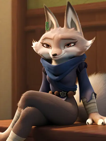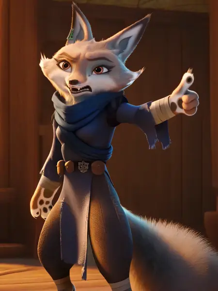 zhen,brown eyes,two-tone fur, grey and white fur, no humans, sharp teeth, fox girl,fox ears,furry female,fox tail