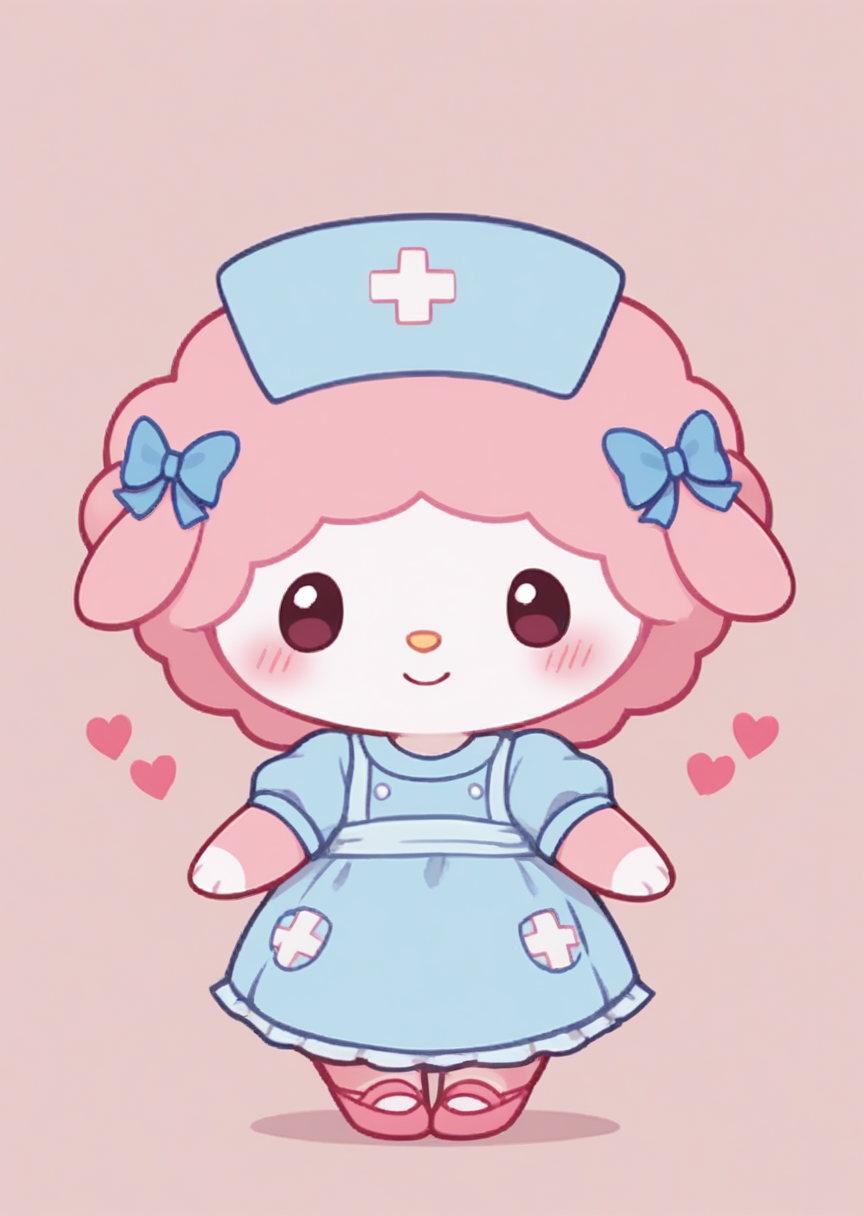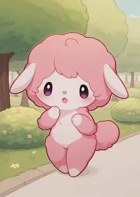 프롬프트: mysweetp, 점 눈, 퍼리, 치비, 페럴, 분홍 털, 흰 얼굴, 검은 눈