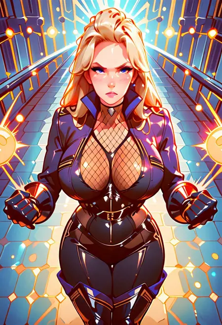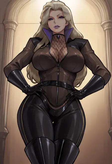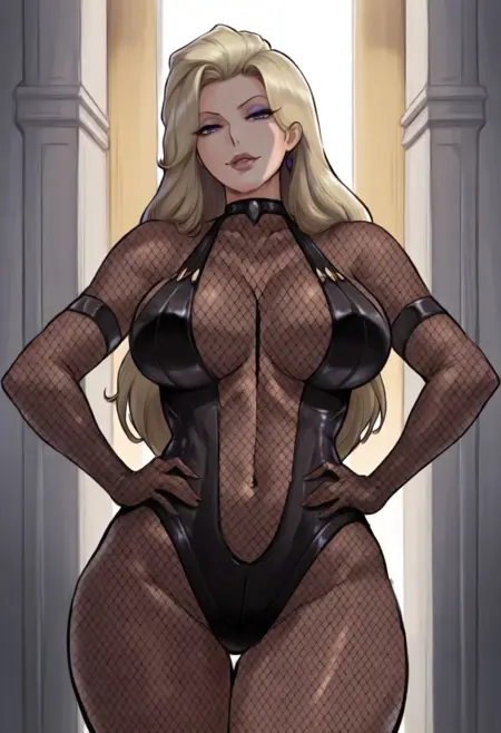 Karen, 1girl, fishnet bodysuit, fishnet gloves,
