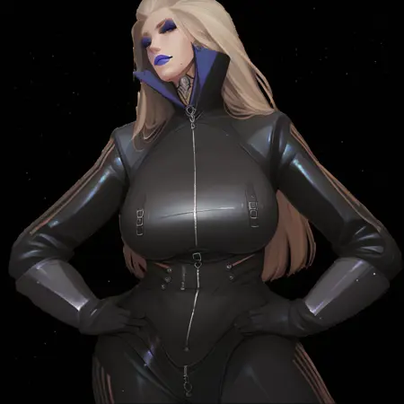 Karen, 1girl, bodysuit, fishnets, see through, cleavage,